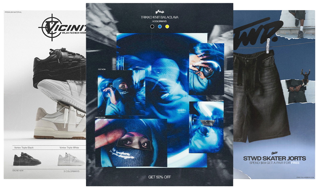 clothing designs, ads, thumbnails,